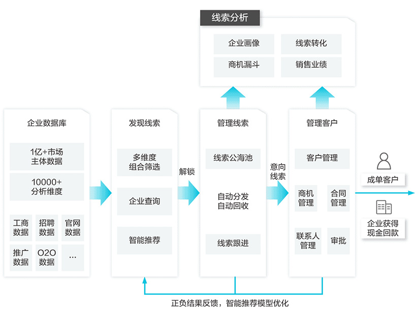 基于大数据和人工智能技术,为企业提供从客户预测、线索挖掘、客户管理到成单分析的流程91看片视频在线观看解决方案。帮助企业降低销售成本,提升销售业绩,形成完整的智能销售闭环。